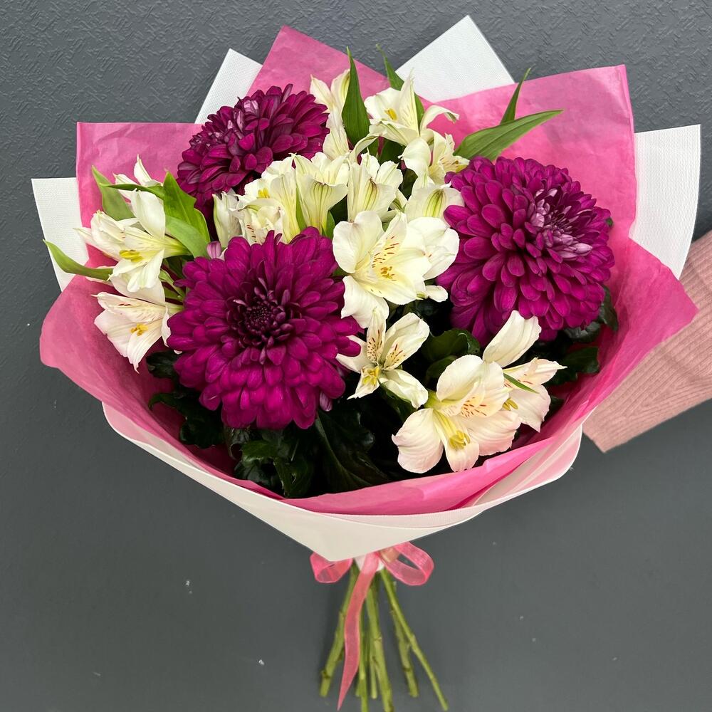 Букет из альстромерии с хризантемой