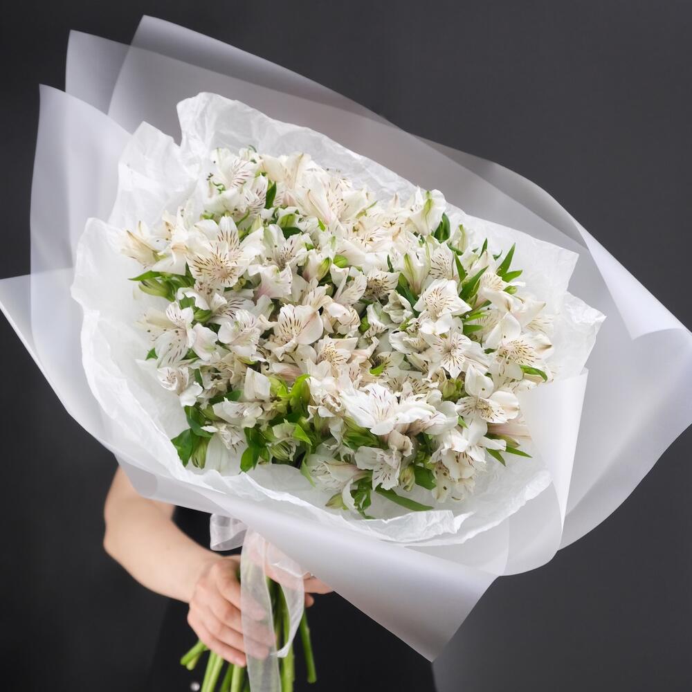 Объемный монобукет из 21 белой альстромерии