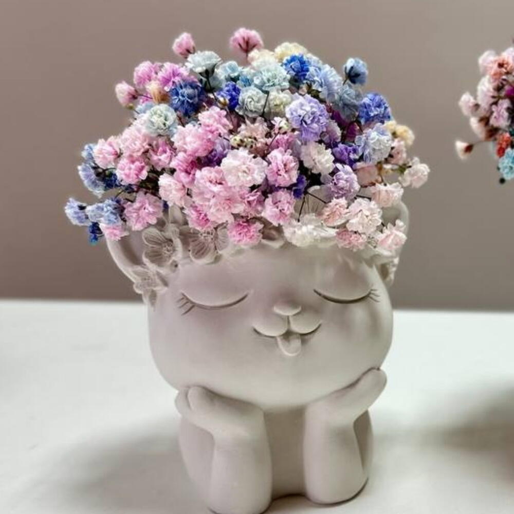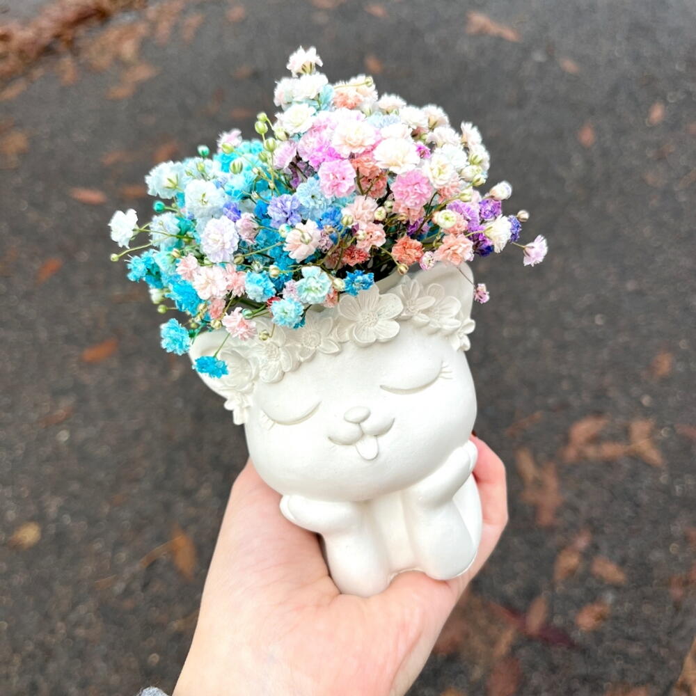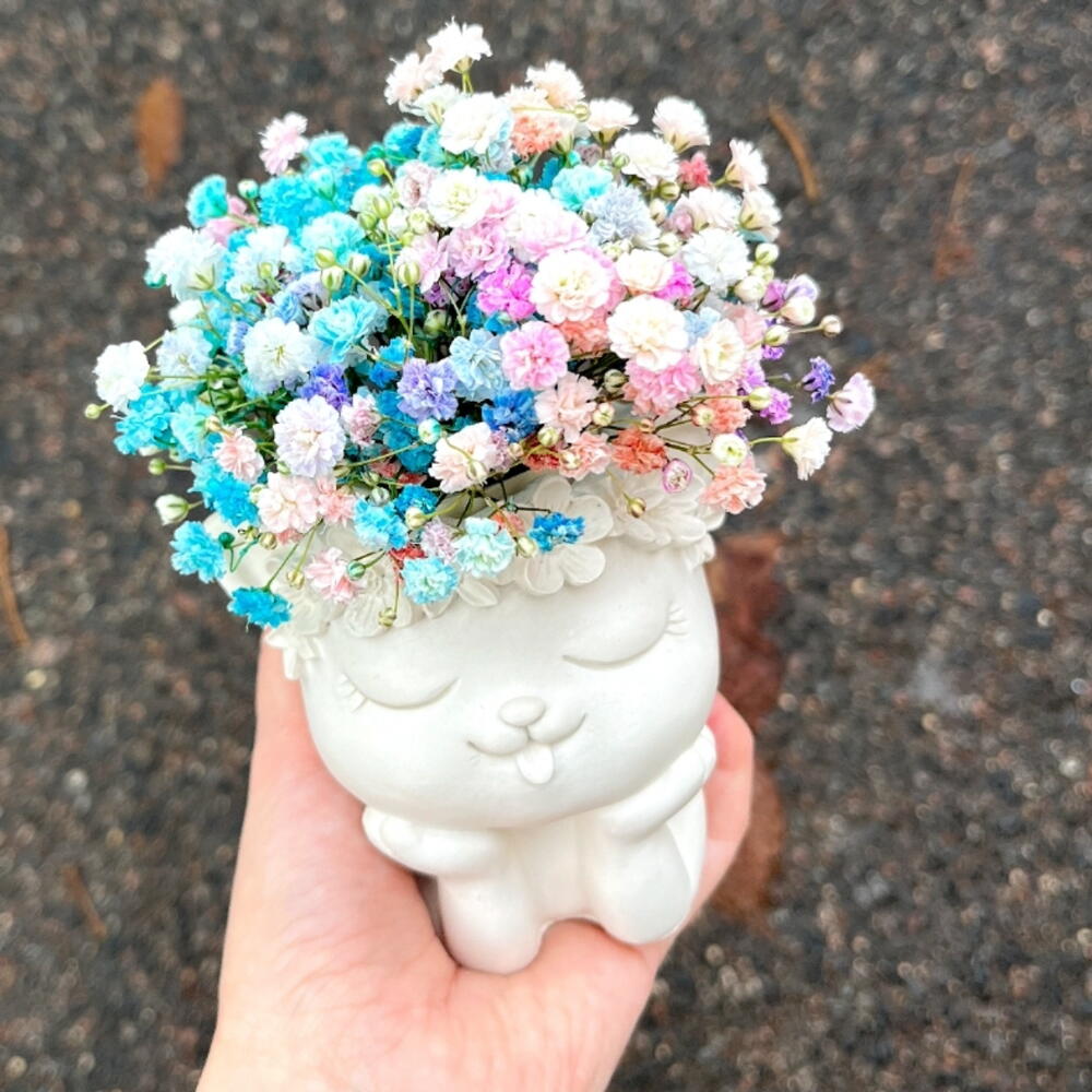 Кашпо из гипса с цветной гипсофилой