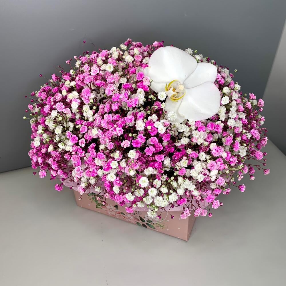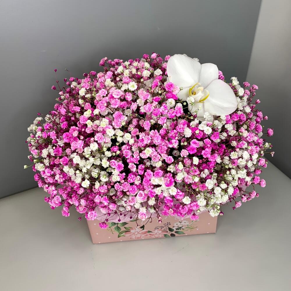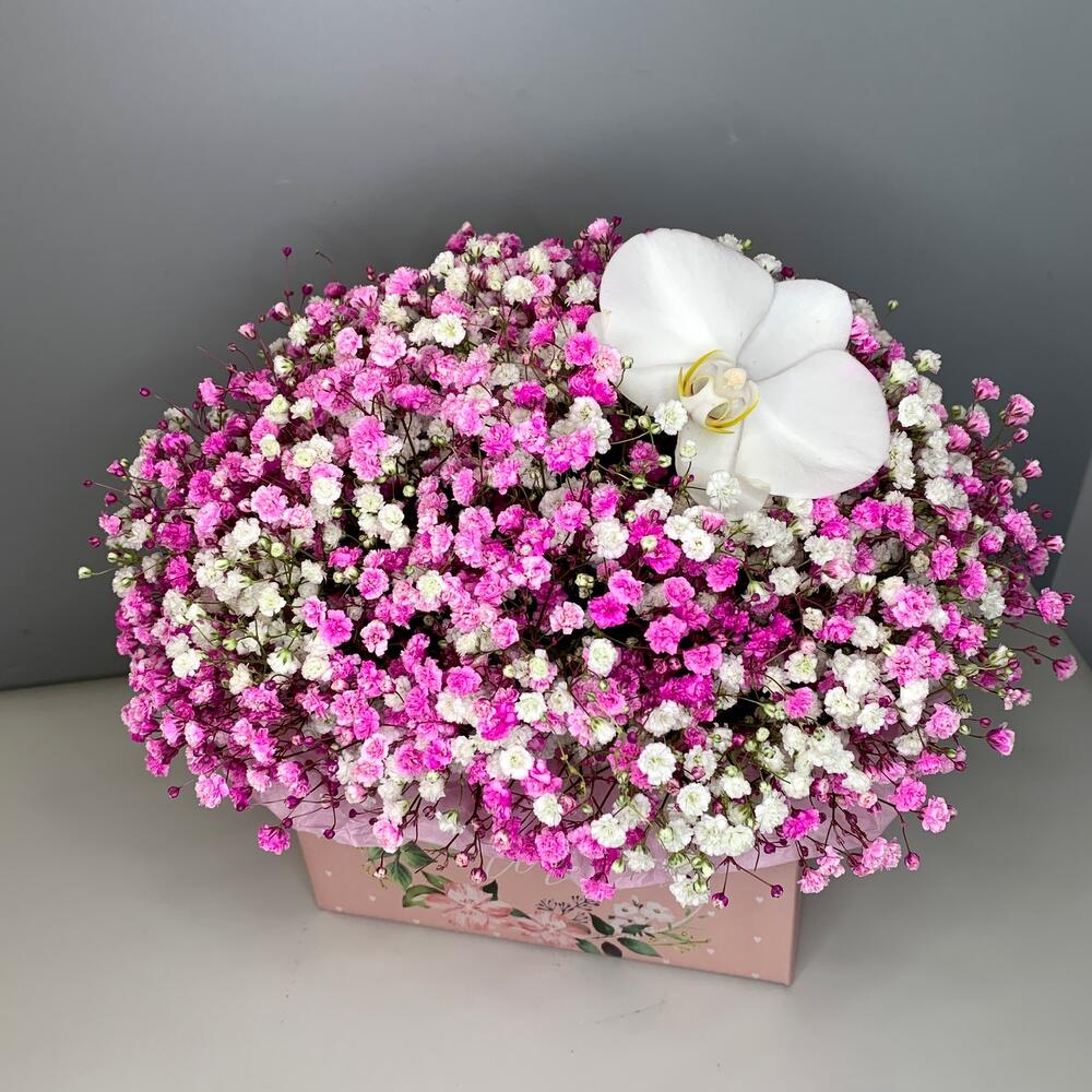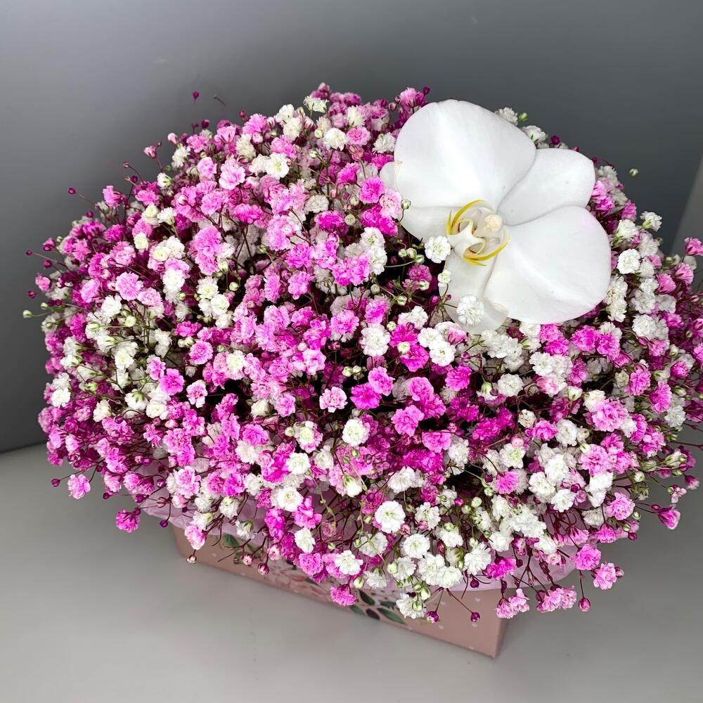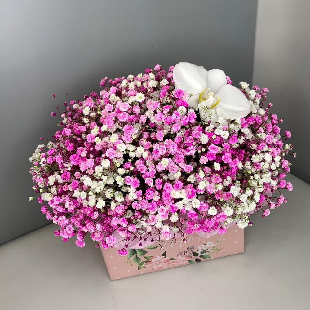Нежная Гипсофила и орхидея в коробке