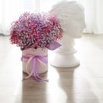 “Сиреневый туман” – композиция из гипсофилы в шляпной коробке