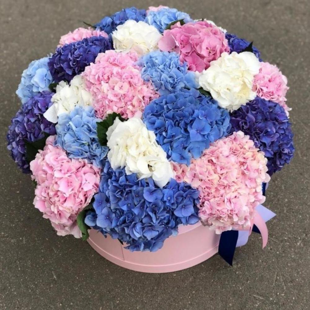 Гортензия – 21 шт.Шляпная коробка – 1 шт.Оазис флористический – 3 шт.