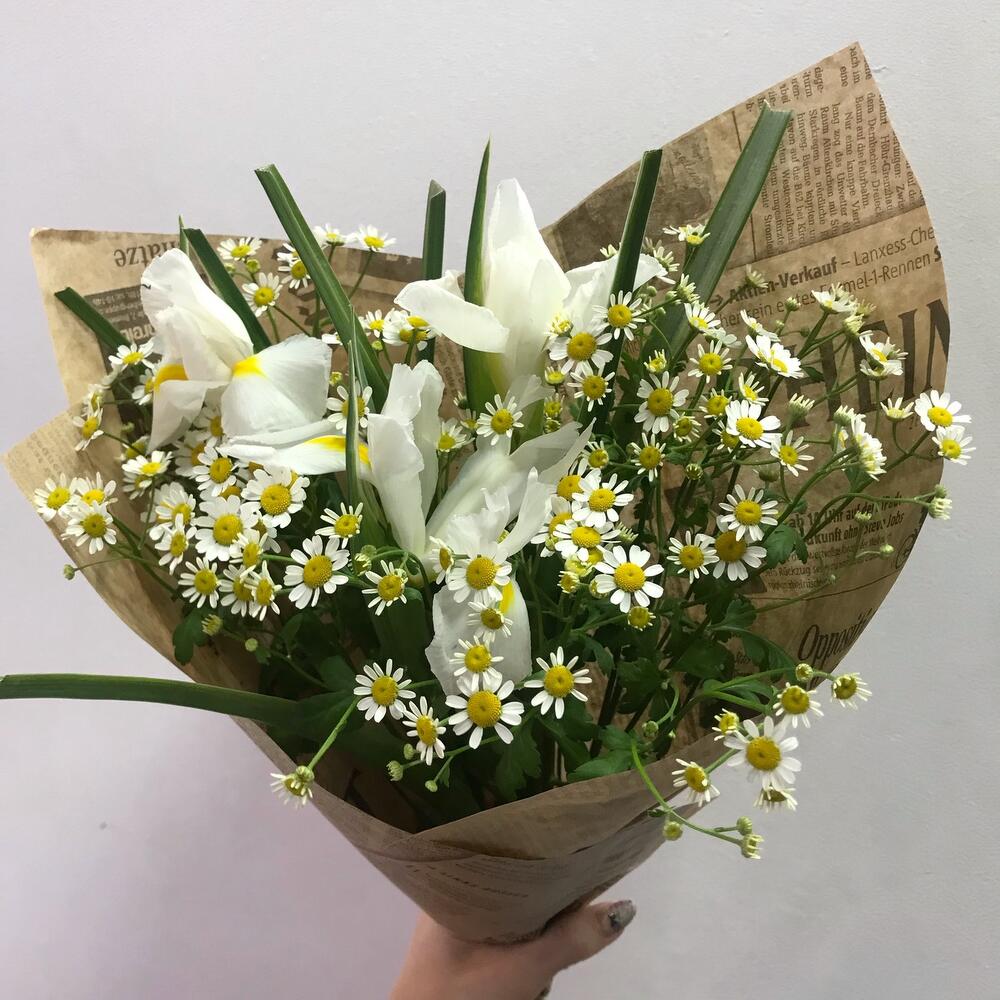 Комплимент-букет в крафте с ирисами и ромашками
