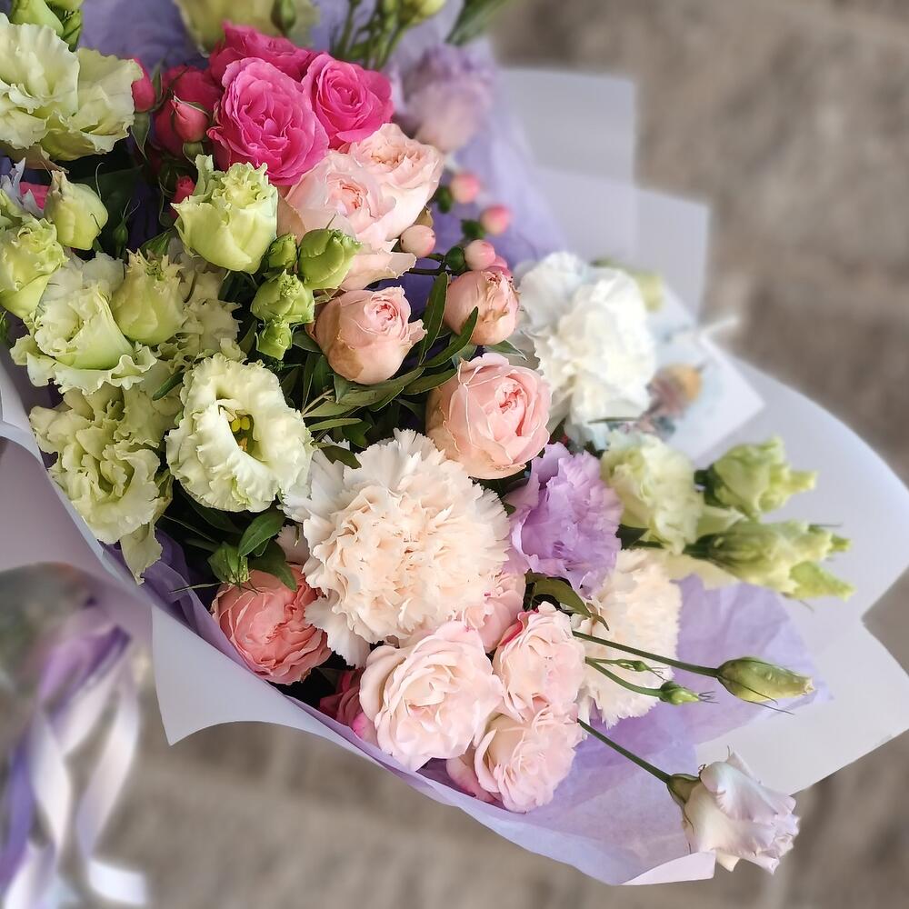 Категорий: Гвоздики, Кустовые розы, Лизиантусы, Пионовидные розы, Розы