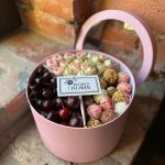 “Атлас☁️” – цветочная композиция с зефиром в деревянном ящике