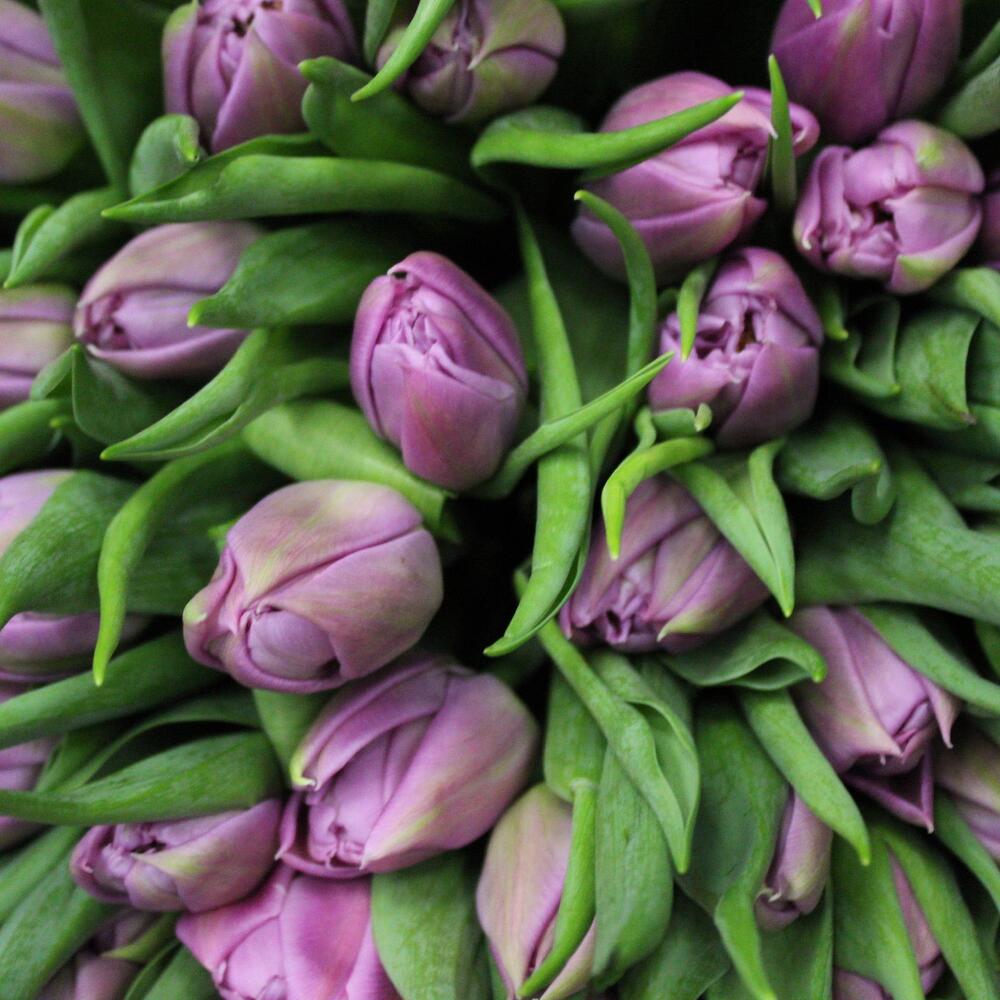 Тюльпан пионовидный дабл прайс – 75 шт.Пленка матовая – 3 шт.Лента атласная – 1 шт.