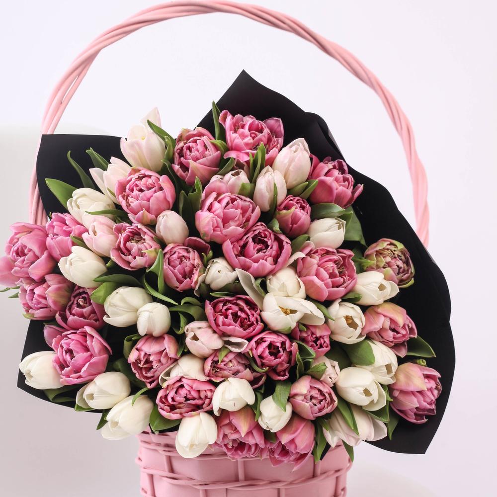Тюльпан пионовидный дабл прайс – 26 шт.Пленка дизайнерская – 1 шт.Сердце – 1 шт.Тюльпан белый (голландия) – 25 шт.
